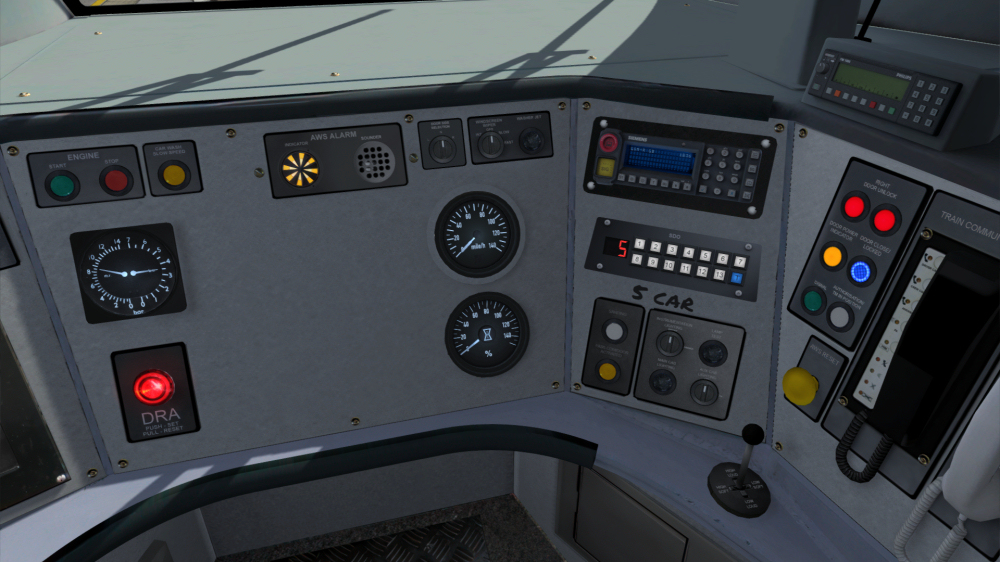 In terms of features, most are what you will have come to expect in our enhancement packs. NRN & GSMR (auto-register only), dynamic exhaust, cold start & realistic acceleration/braking physics to name a few. One feature of particular interest however is the door control, which again, is quite unique to a 222. Upon stopping at a station, the Selective Door Operation (SDO) panel illuminates in the cab and you must select how many cars of your train you wish to open the doors on. Once you have done this, you may open the doors as normal but only the number of cars you have selected will open their doors. In reality, there is a little more complexity as you need to also choose which side to open the doors, but we are limited somewhat by the cab model provided in the original pack by Just Trains. This limitation also means that a keyboard command needs to be used to select the number of cars rather than being able to click a button.